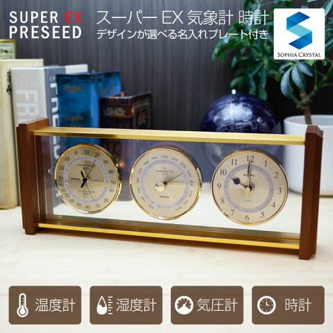開業祝い、退職祝い、敬老の日、父の日、母の日、結婚祝い、誕生日祝い、還暦祝い…その他どんなお祝いにも喜ばれる気象計・時計です! ▼こちらも人気の名入れ時計です▼ 新商品!! 気象計・時計と同じシリーズで小さめサイズです クリスタル置き時計 手のひらサイズでクリアな美しさが魅力です スケルトンが美しい高級時計 少し高価な贈り物をご希望の方にオススメです! 機 能 気圧計・温度計・湿度計・時計 (電源:単3乾電池1個) 外枠材質 チタン風アルミ枠:アルミ 木枠ゴールド :天然木、アルミ サイズ チタン風アルミ枠:34cm×14.4cm×5cm 木枠ゴールド :36cm×14.3cm×5.5cm 製 造 日本製 包 装 専用箱入り 贈り物に大人気の名入れギフト! 開業祝い、退職祝い、敬老の日、父の日、母の日、結婚祝い、結婚記念、誕生日祝い、金婚祝い、還暦祝い、古希祝い…どんなお祝いにも喜ばれる made in Japan の気象計・時計です。